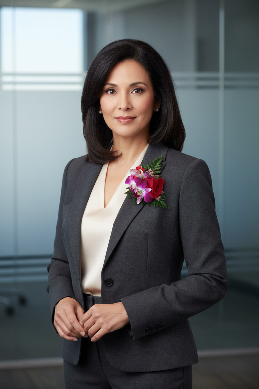 Elegante corsage de rosa y orquídeas para solapa de vestido. Perfecto para bodas, quinceañeras y eventos especiales en Panamá.